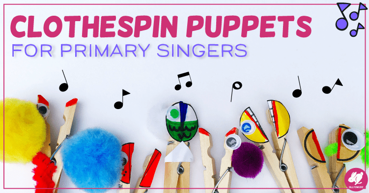 It’s common to have primary music students who are reluctant to sing or even say their names. Since puppets in music class help shy kiddos sing, why not make inexpensive puppets for everyone with clothespins? Try using them for warm-ups, vocal play, call & response songs, and conversational solfege.