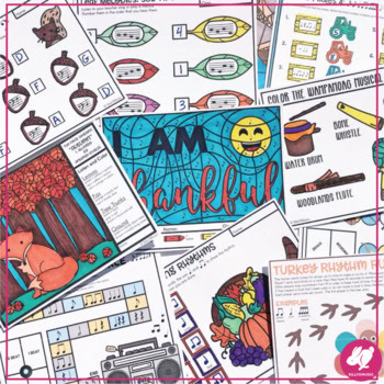 This 47-page Thanksgiving and Turkey music activities set will be a fun addition to your music lessons. They feature no-prep printables like spinner games, a listening glyph, rhythm math, color-by-note, and more! They are useful for sub plans and centers because they are self-explanatory and review basic concepts.